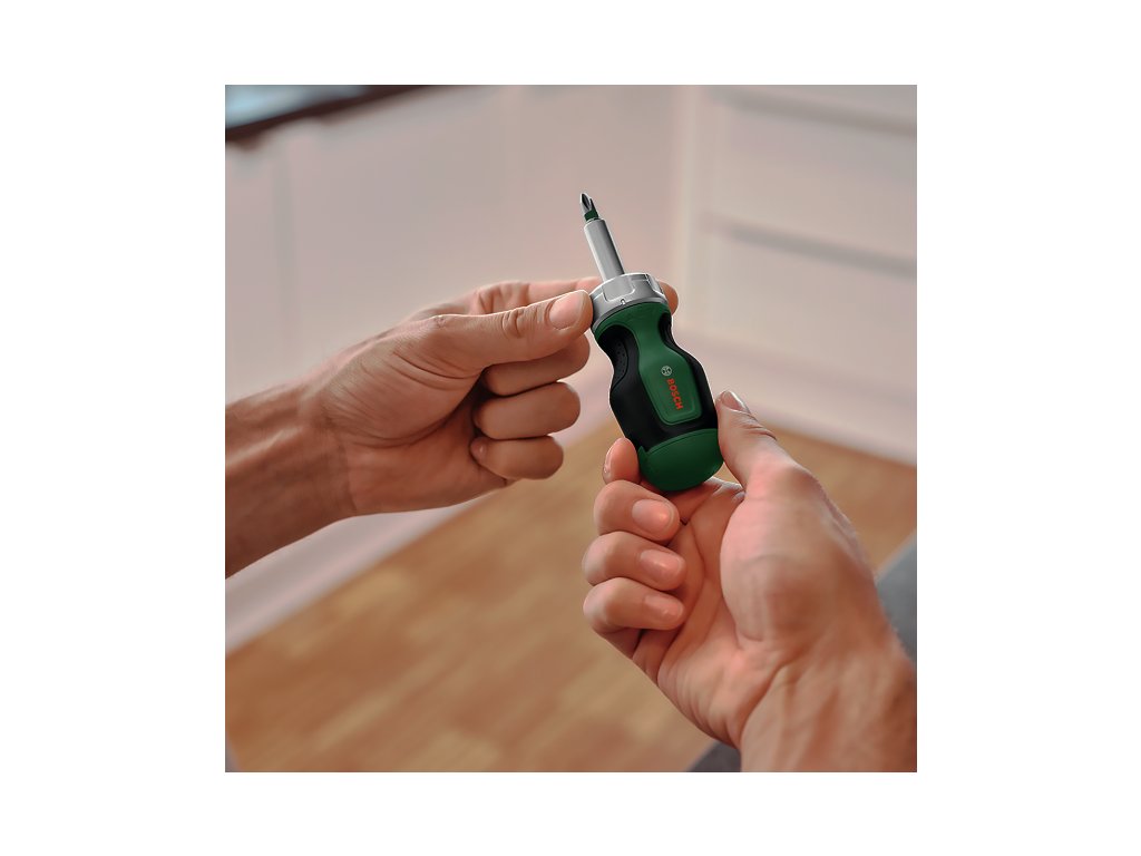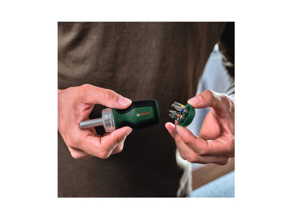 - 1x Krátký ráčnový šroubovák se 6 bity (HEX3, HEX4, HEX5, TX25, PH2, SL5)