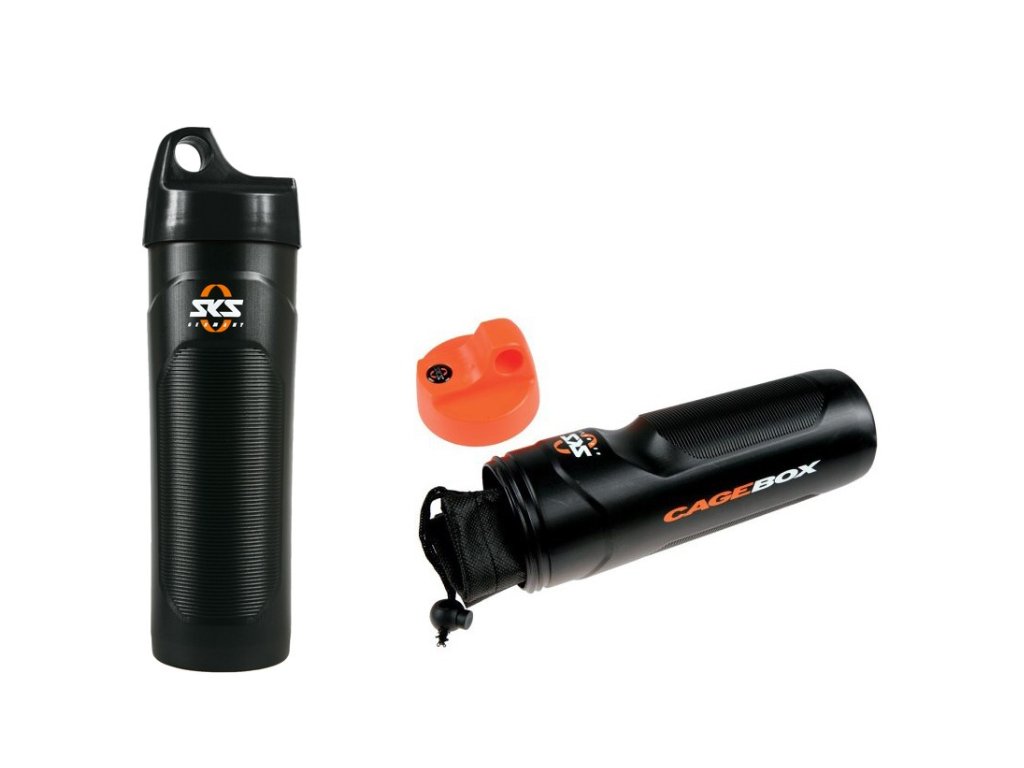Cyklo příslušenství SKS. Přihrádka do košíku na láhev. Do které lze dát nářadí, pumpičku, lepení či další jiné věci a ochrání je tak před vodou.